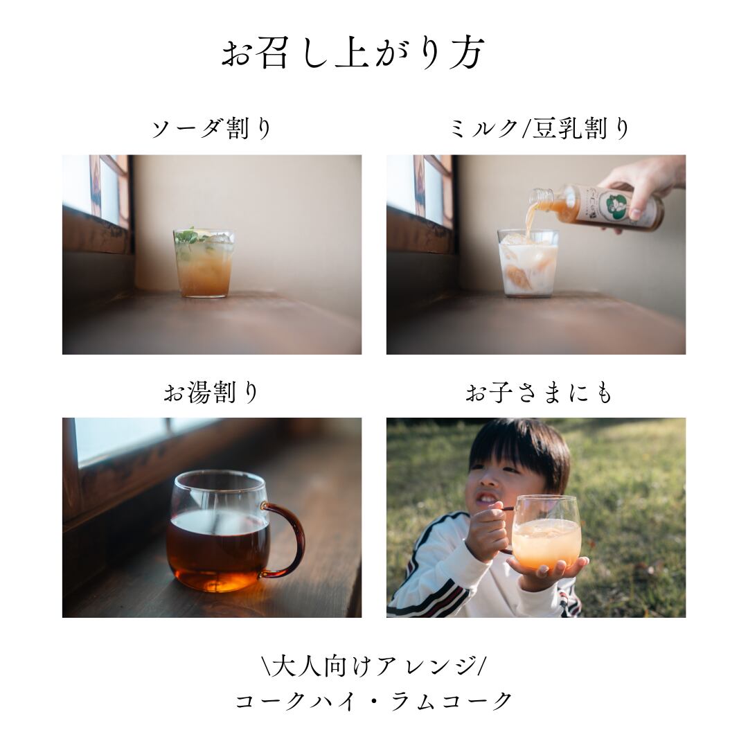 コーラの他にも、お湯で割ってスパイスティーにしたり、豆乳で割ったり、お菓子作りに使用したり、様々な使い方でお楽しみいただけます。